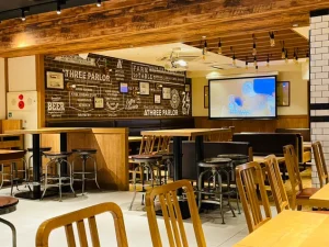 どのエリアにも全国展開のブリティッシュパブなどがあり、店内でスポーツ中継を放映していることも多いです。