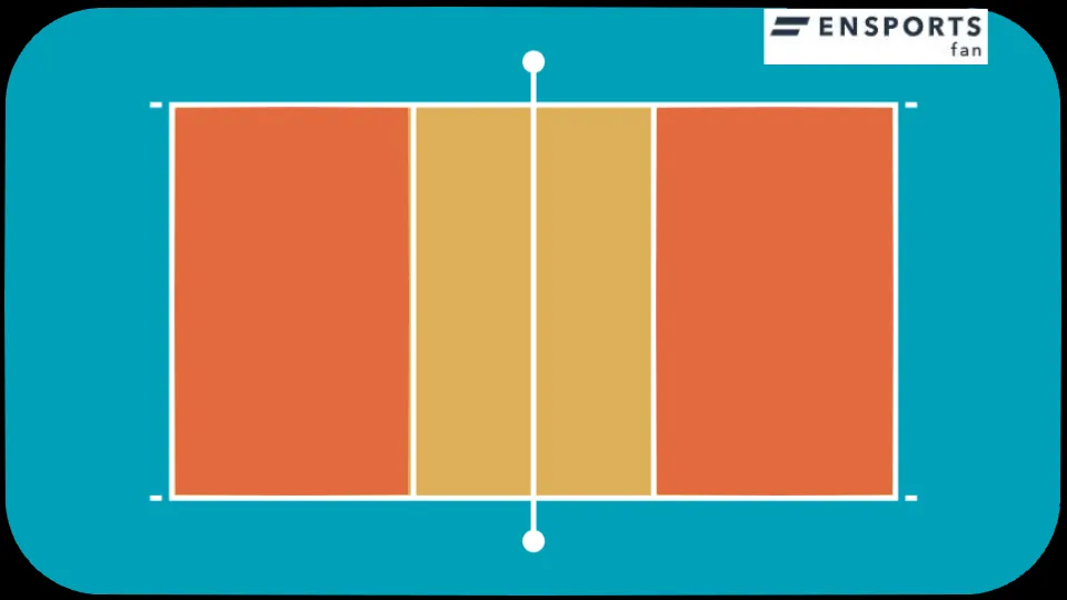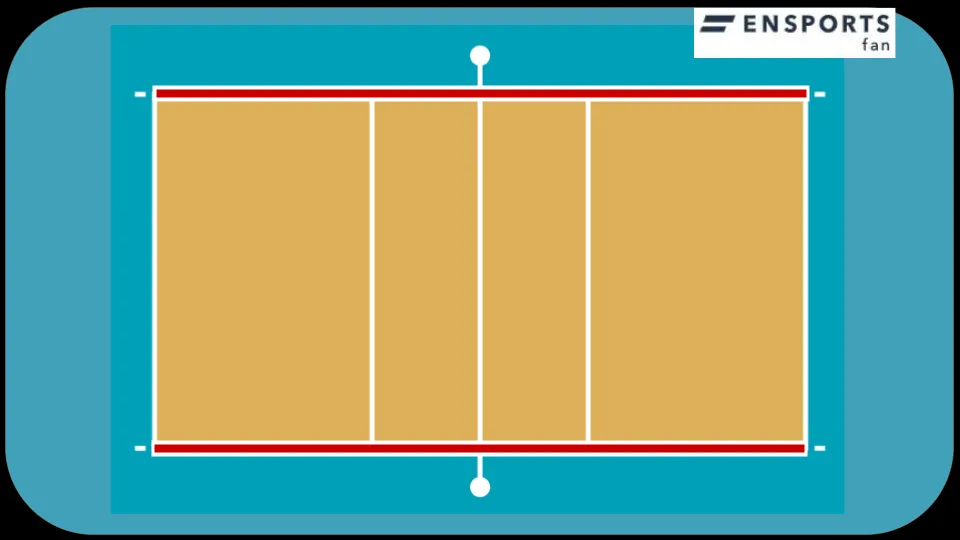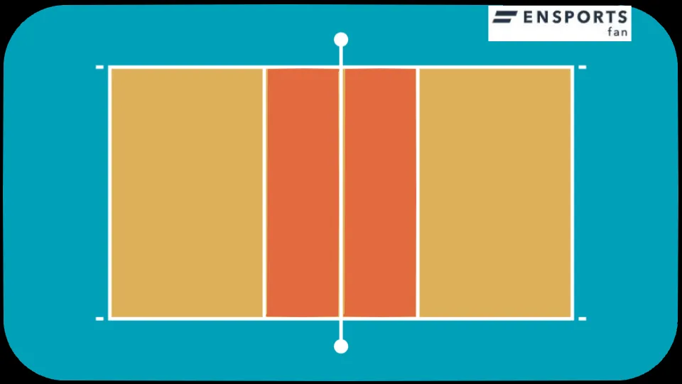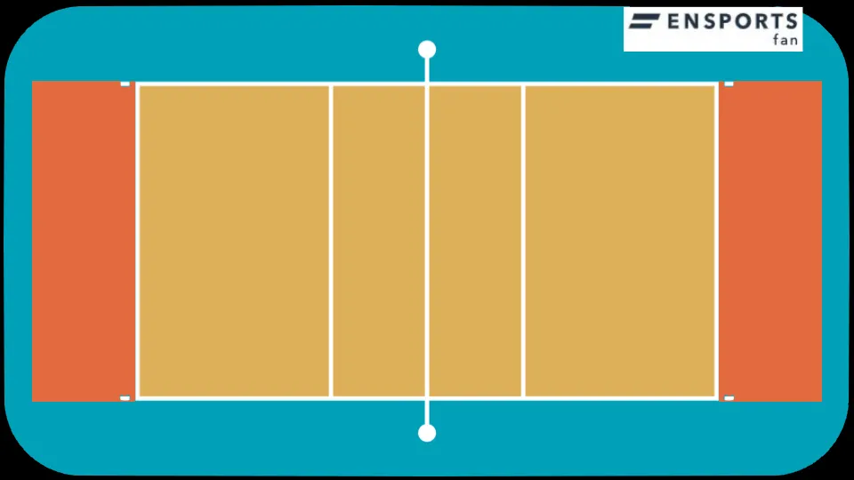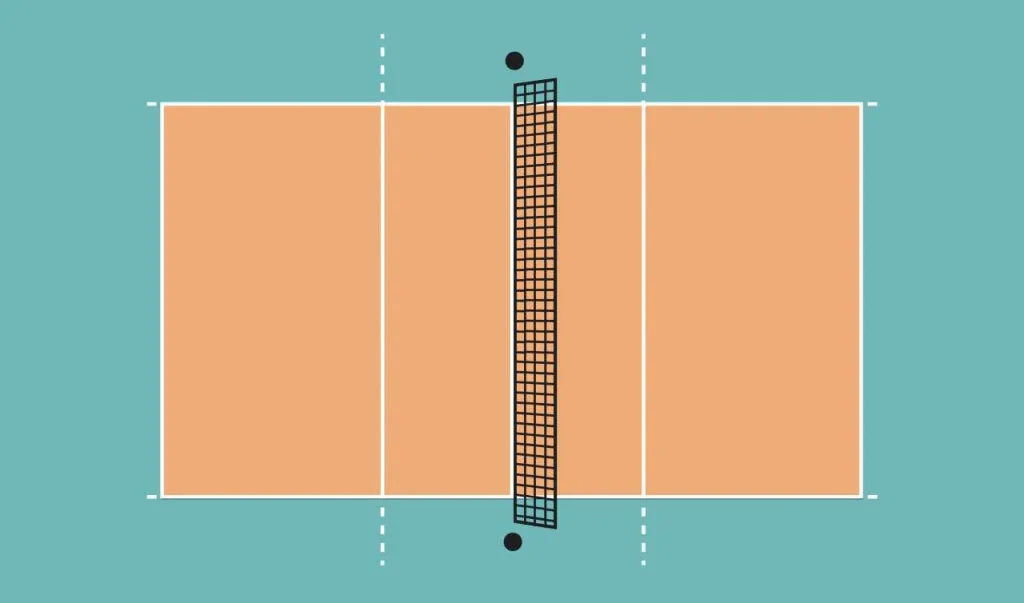 長方形をネットで正確に半分に分け、各チームに9m×9mが割り当てられます。