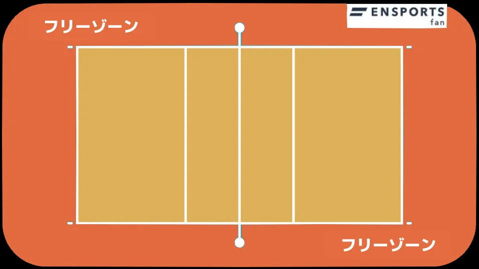 さらに、コート周囲にはプレーエリアとなる「フリーゾーン」が設けられます。